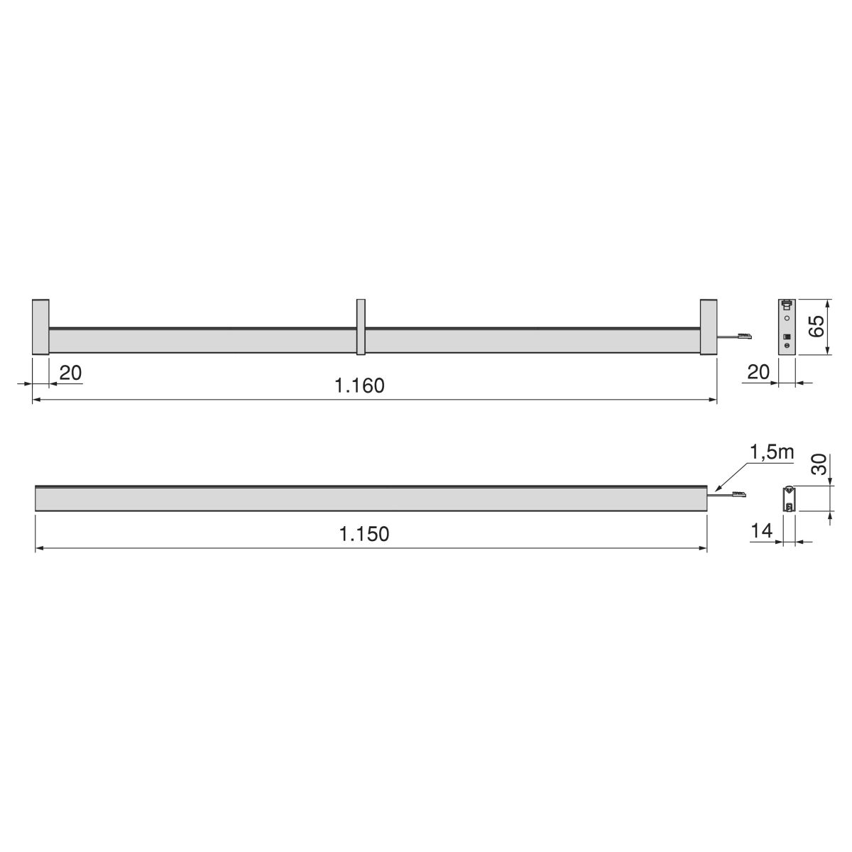 - Kit barra appendiabiti Luxe con illuminazione Neonlynx V 4,5x8 e sensore di movimento RF Smart, progettato per illuminare e organizzare l'interno dell'armadio in modo elegante ed efficiente. Adatto per armadi con larghezza interna di 1.160 mm, può essere facilmente tagliato ogni 25 mm per un adattamento preciso allo spazio disponibile.